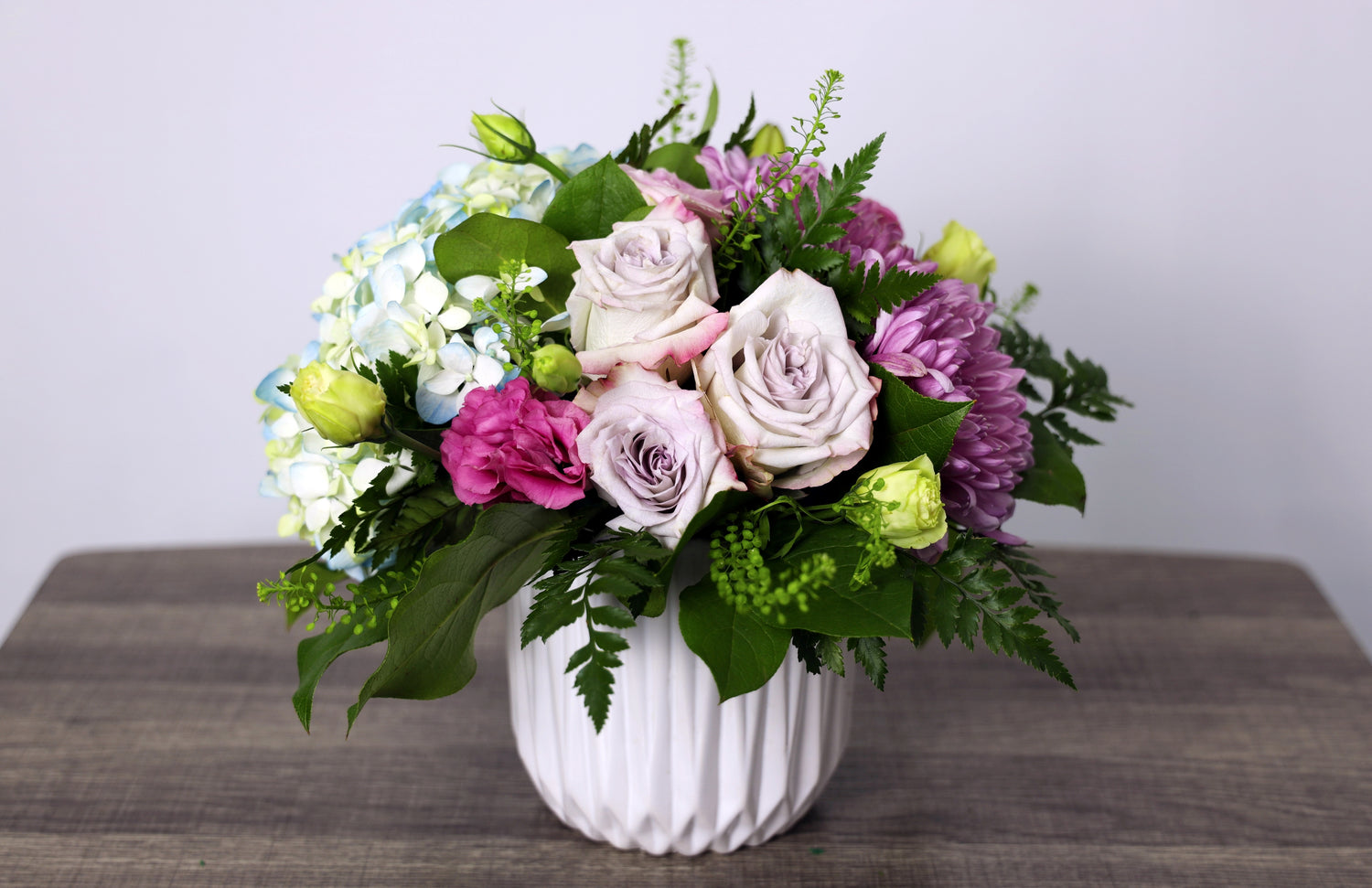 Flowers and containers may vary in availability because each arrangement is hand-made with the freshest flowers